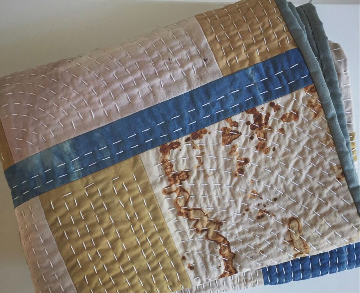 This quilt can be easily washed and will last forever. If it develops a hole after years of heavy usage, it can be mended with sashiko and look all the better for it.